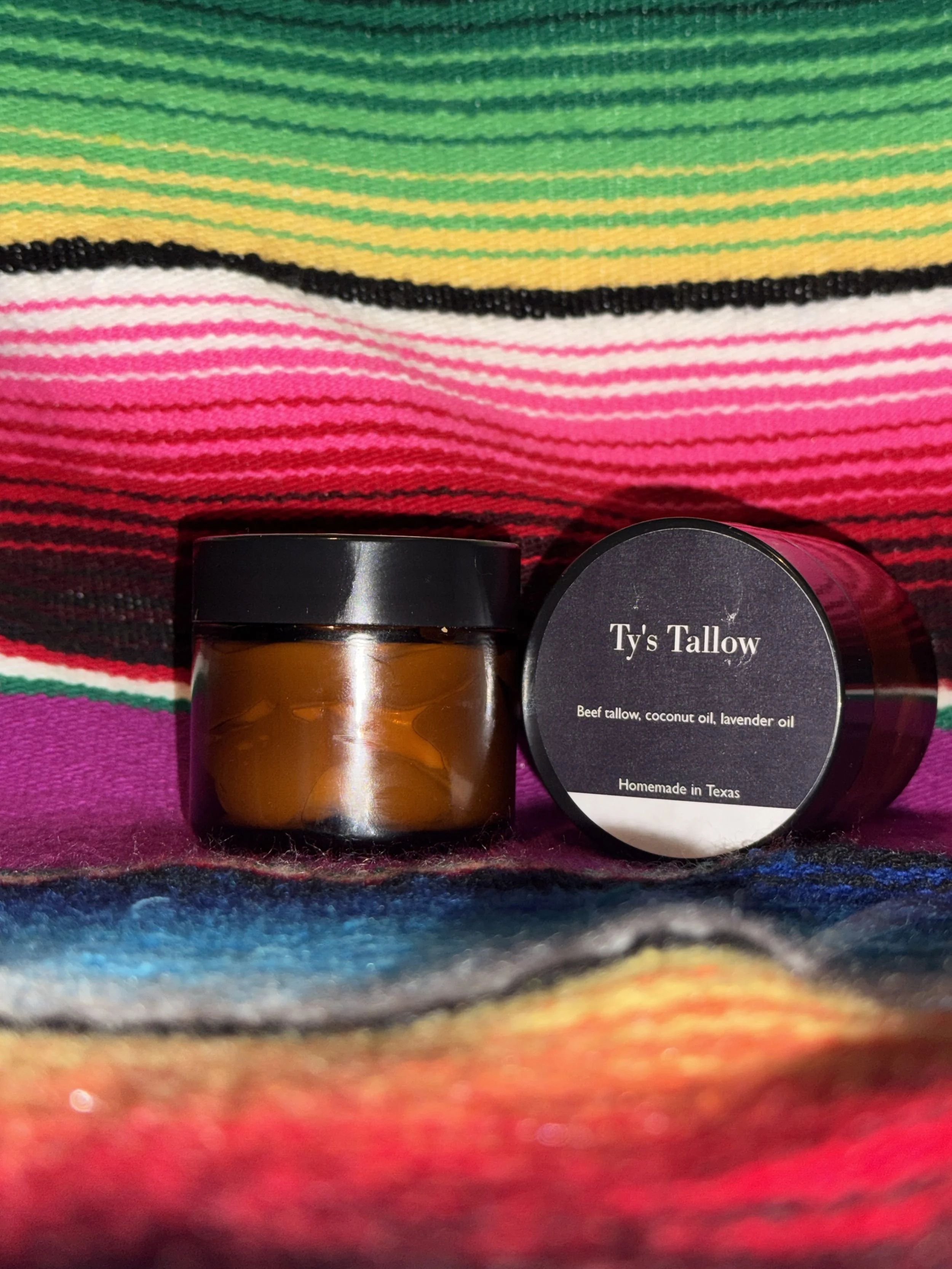 Store › Ty's Tallow - 2 oz jar Image 1 of 1 Ty's Tallow - 2 oz jar Sale Price: $12.00 Original Price: $17.00 Beef tallow, coconut oil, lavender oil. Perfect for your hands or skin! All products are homemade and packaged by Tyler. Quantity: Purchase Added! Beef tallow, coconut oil, lavender oil. Perfect for your hands or skin! All products are homemade and packaged by Tyler.
